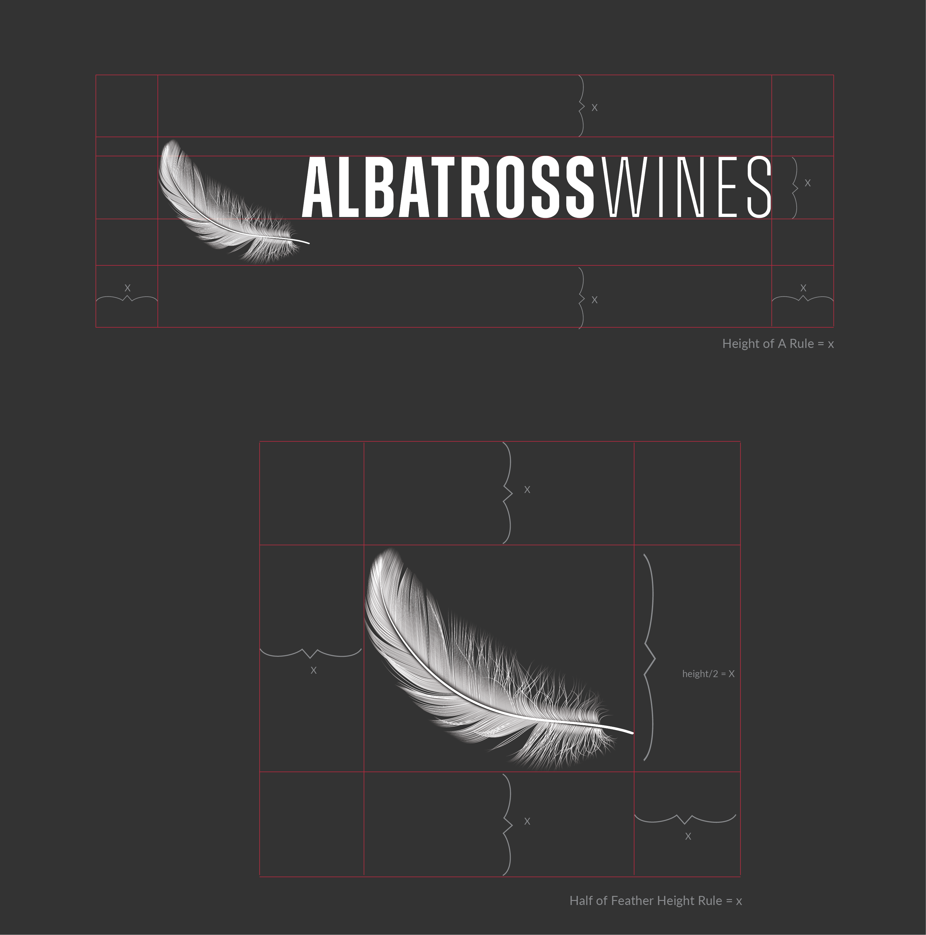 When the feather is used separately, the Height Half of The Feather Rule applies. Measure the height of the “Feather” and divide by 2 to determine the minimum amount of clear space that should surround the feather.